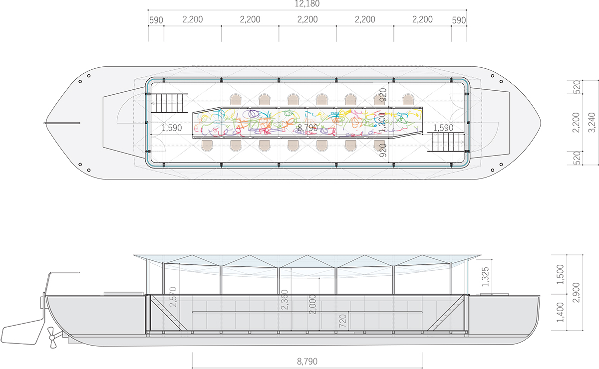 This ship becomes a mobile communal space for regional people and visitors by traveling between facilities and places along the canal.