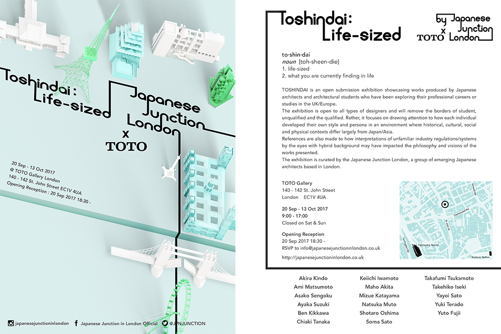 I have curated an exhibition which presented works by 17 Japanese people who have studied or worked in the UK or Europe. The theme of the exhibition was to show what they have done in their career in comparison to their individual backgrounds of moving to the UK. I have created graphic designs of: logos, fonts, posters, and websites as well as details of each exhibition panels and captions for this exhibition.