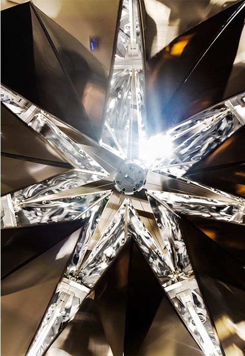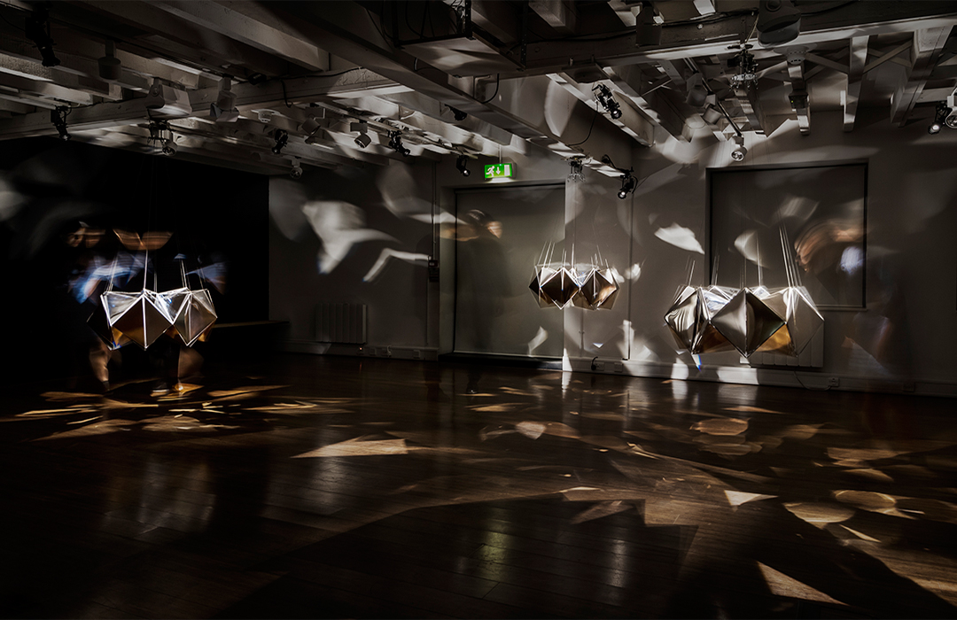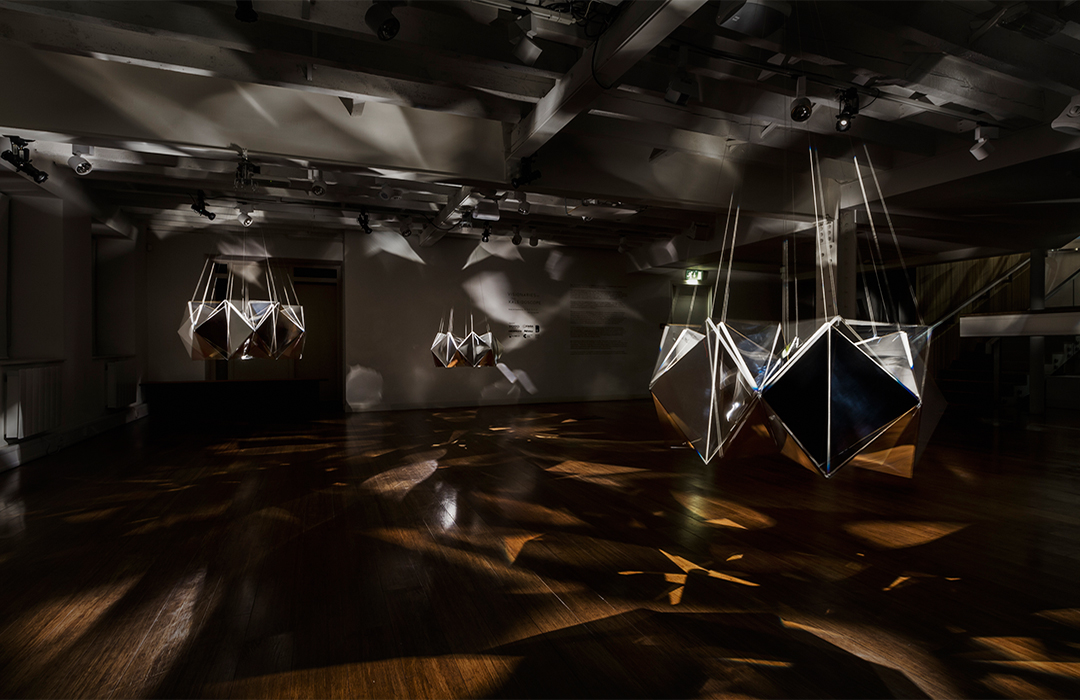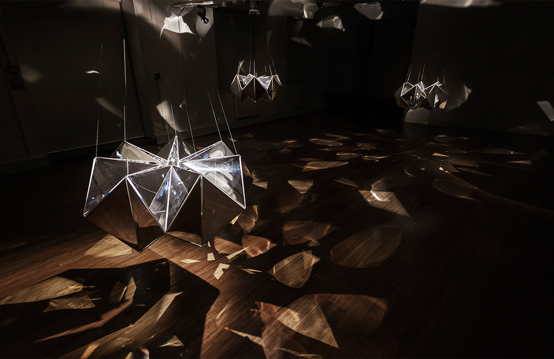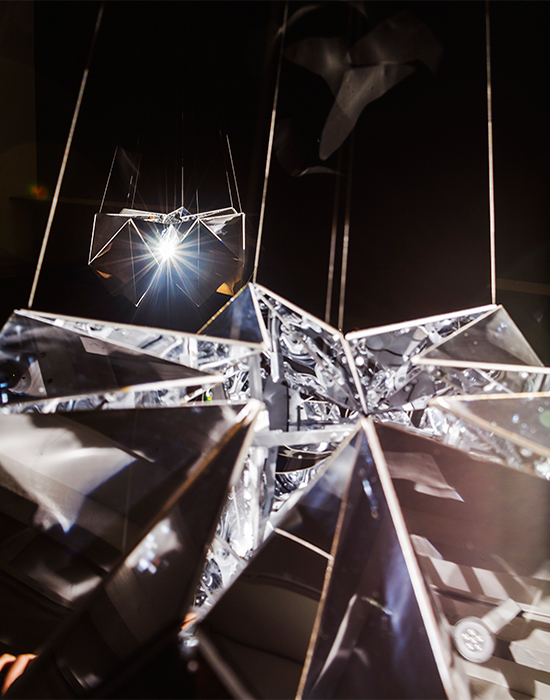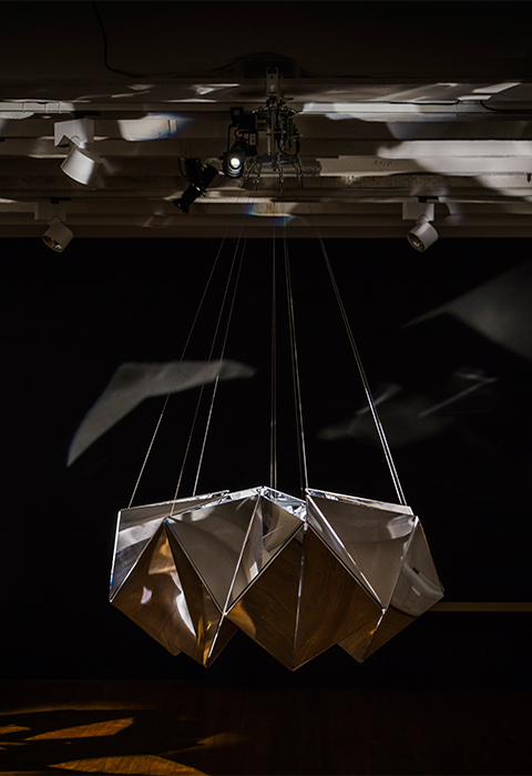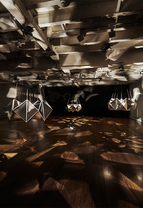 The kaleidoscope, invented by English scientists, became familiar to children as a toy in Japan since it was imported during the Edo era. It was developed by incorporating Japanese paper, up to the point that it became a traditional craft. We would like to utilise this craft as a motif to create a machine which decorates space as an installation. The word “visionary” has two different meanings: a person with a clear vision and a daydreamer. We are utilizing both meanings in the title of the exhibition, “Visionaries of the Kaleidoscope.” The kaleidoscope is created by showing whimsical scenes based on mathematical geometries.